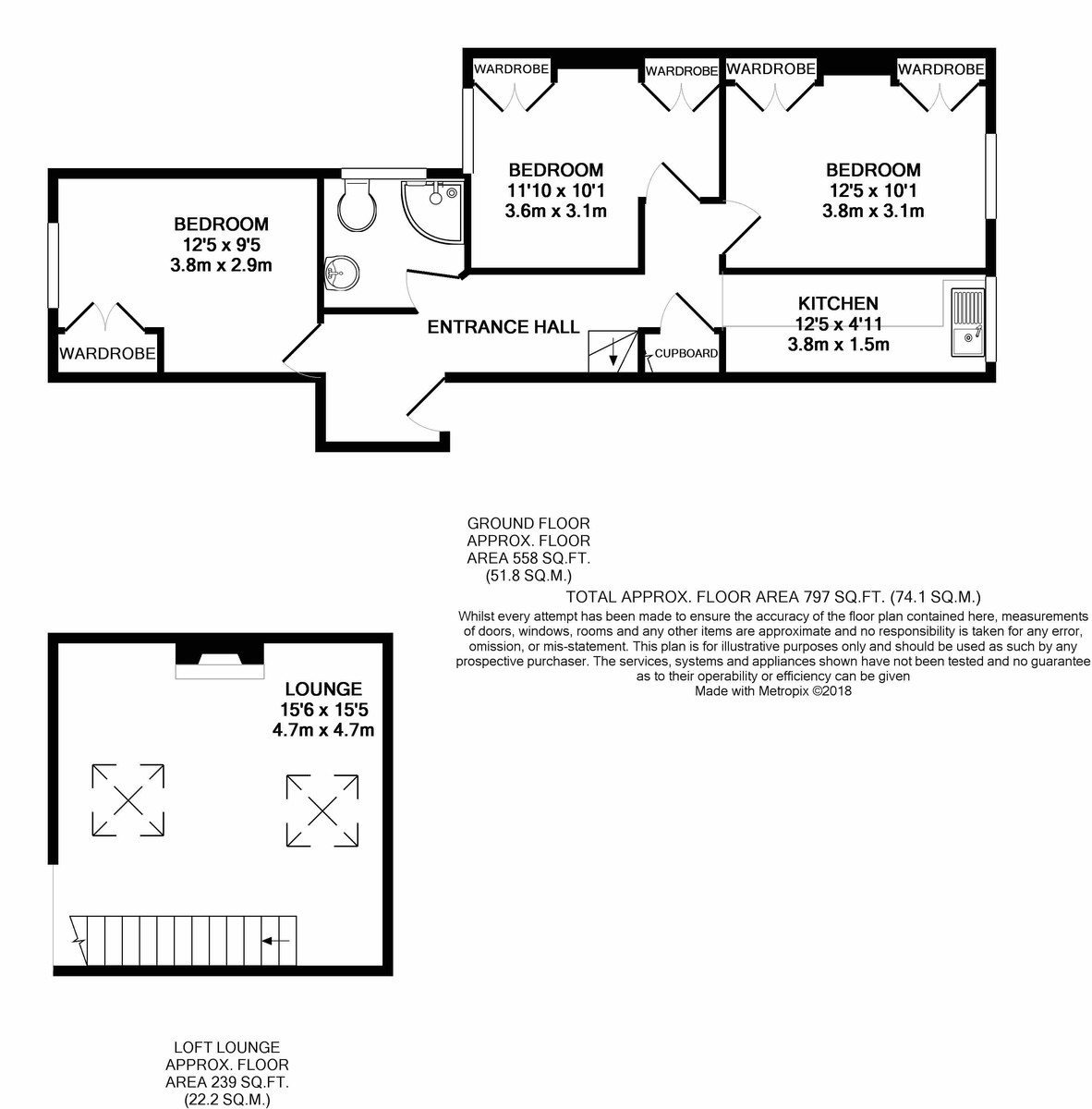A beautifully presented, light and spacious three double bedroom apartment. Modern kitchen and high specification throughout. Arranged over the top two floors of this Victorian property, the three double bedrooms are on one level and the lounge is up in the loft conversion, with a pretty fireplace and skyline views. Excellent location for Clapham tube, restaurants and shops. Share of freehold and chain free
